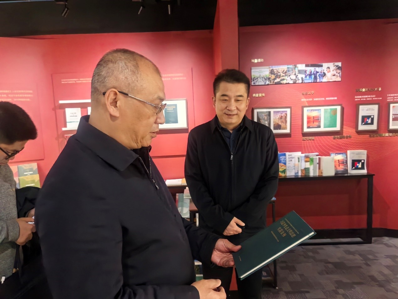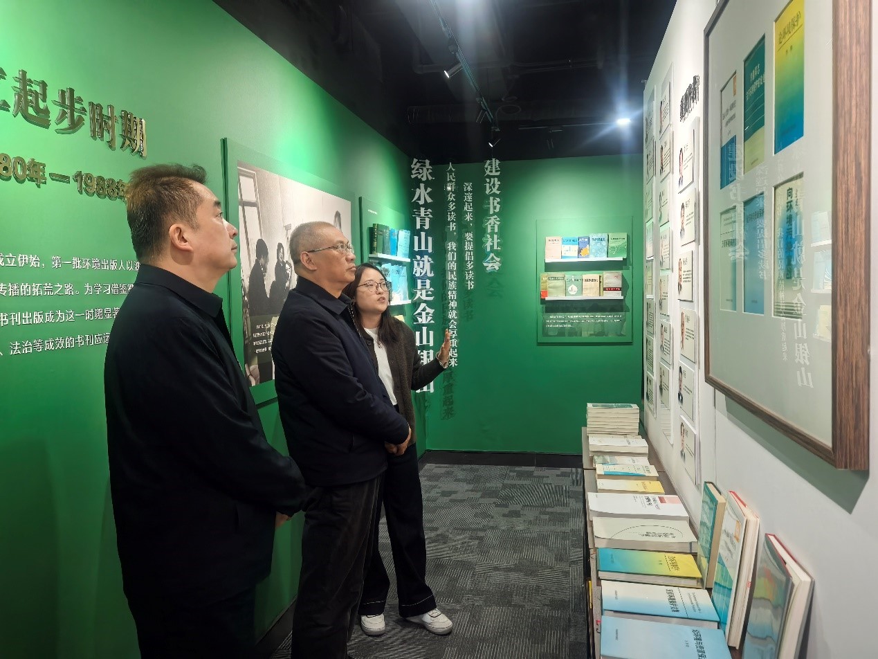 調(diào)研中,潘碧靈一行參觀了集團(tuán)版本室,詳細(xì)了解集團(tuán)發(fā)展歷程、精品圖書出版及融合出版實(shí)踐,對(duì)出版集團(tuán)作為生態(tài)環(huán)境部直屬專業(yè)出版機(jī)構(gòu),在宣傳國家環(huán)保方針政策、傳播環(huán)境科學(xué)知識(shí)、提升全民生態(tài)意識(shí)中發(fā)揮的重要作用給予肯定。